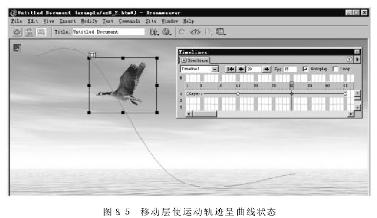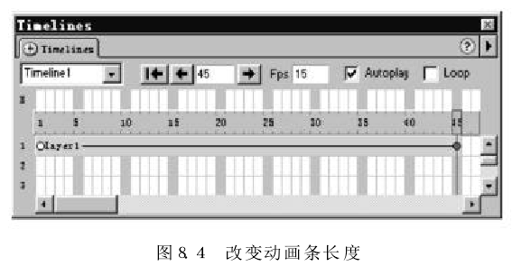 (9) 通过预览动画,发现小鸟的飞行速度太快了,可将“Fos" 中 的每秒帧数从15改为8,这样可以降低小鸟的飞行速度。