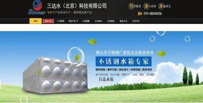 三达水(北京)科技有限公司选用我司经济型入门级网站案例,其功能比较简单的程序,广告单图(无动漫),页面较简单,适合小微企业产品展示型网站。三达水(北京)科技有限公司是经北京市工商行政管理局海淀分局审核的有资质的公司,是经审核的有资质的公司,统一社会信用代码:91110108575240566N,三达水(北京)科技有限公司地址:北京市海淀区知春路56号西区7号230室。