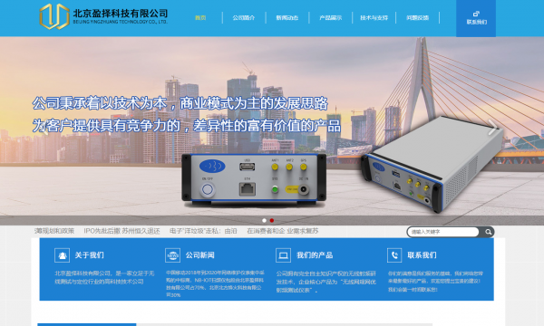 一流的团队,专业的背景。北京盈择科技有限公司,是一家立足于无线测试与定位行业的高科技技术公司,公司拥有 完全自主知识产权的无线射频研发技术,企业核心产品为“无线网规网优射频测试仪表”。公司秉承着以技术为本,商业模式为主的发展思路,通过不断的技术创新和行业应用创新 ,为客户提供具有竞争力的,差异化的富有价值的产品。