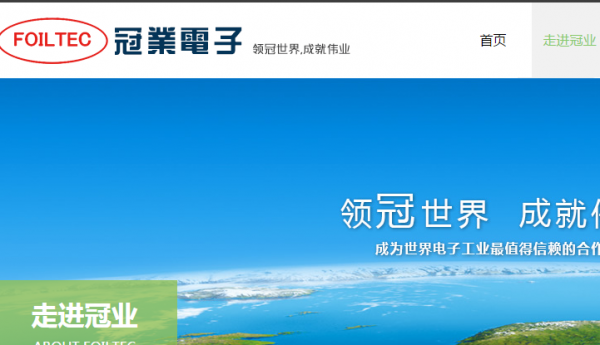 冠业电子于1996年在广东省博罗成立,是专业生产铝电解电容器用铝箔的高新技术企业,一直专注于铝电解电容器用铝箔,超级电容器用铝箔,动力电池用铝箔的研发、生产及销售,是目前国内规模较大的负极箔生产企业之一。公司成立以来一直专注于铝电解电容器用铝箔,超级电容器用铝箔,动力电池用铝箔的研发、生产及销售,是目前国内规模较大的两家负极箔生产企业之一。占全球市场份额的35% 。通过十多年的发展,公司已成为国内铝电解电容器电极箔行业的领军企业之一,公司的“FOILTEC”品牌已经深得国内外同行及下游企业的好评,并成为日本NICHICON、 HITACHI 、韩国三和、美国KEMET,东莞冠坤、江海股份,台湾立隆,台湾台容,台湾金山,珠海格力,常州华威,佛山三水日明等国内外知名铝电解电容器生产企业的优秀供应商。2013年开发的超级电容器用铝箔是国内第一家,产品质量达到日本JCC同等水平,得到下游企业的好评,并成为北京集星科技,宁波南车新能源,东莞斯巴复等超级电容器优秀供应商。