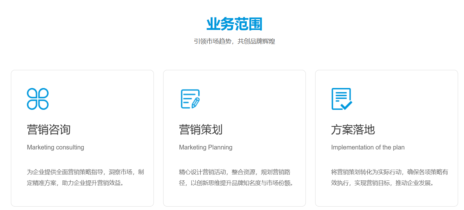 蓝图营销是一家专业从事营销策划、企业管理、品牌设计、战略执行的公司,提供企业策划、产品定位、战略定位、市场营销等方面的服务。并专注实体企业,为实体企业提供营销策划、战略规划,并打造系统的持续增长解决方案。协作企业战略执行,“让实体企业更成功”是蓝图营销公司的使命;为企业提供实效、有价值的执行方案、共同实现战略目标是我们的愿景。
