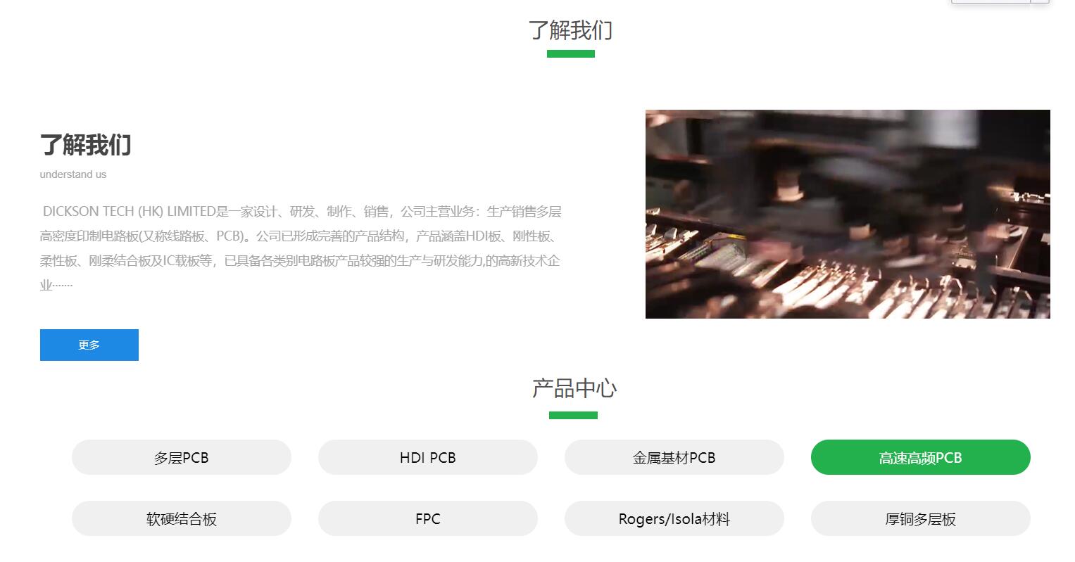 DICKSON TECH (HK) LIMITED是一家设计、研发、制作、销售,公司主营业务:生产销售多层高密度印制电路板(又称线路板、PCB)。公司已形成完善的产品结构,产品涵盖HDI板、刚性板、柔性板、刚柔结合板及IC载板等,已具备各类别电路板产品较强的生产与研发能力,的高新技术企业。