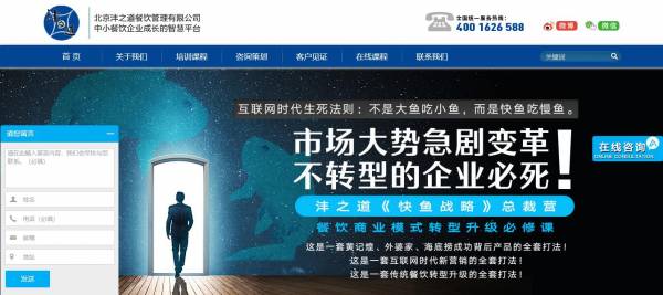 北京沣之道餐饮管理有限公司选用我司企业餐饮管理行业的网站优化产品,其SEO关键词有餐饮店长培训,餐饮管理培训公司,餐饮管理咨询公司。其特点是用很合适的展示方式、展示效果、站点框架,把客户及其用户很关心的问题突出表现;并以简洁明朗的设计风格,清晰展现公司水平实力,确保一秒抓住目标用户眼球,给用户留下良好的第一印象。北京沣之道餐饮管理有限公司成立于2011年,统一社会信用代码:91110105584430556K,是经北京市市场监督管理局审核的有资质的公司 。公司地址:北京市朝阳区盛世龙源文化创意园A座5层。