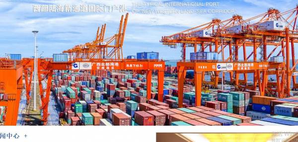 目前挂靠钦州港的集装箱航线50条,其中外贸26条(远洋航线3条),内贸24条,基本实现国内主要港口和东南亚、东北亚主要港口全覆盖,通达全球100多个国家的200多个港口。目前正在建设钦州港大榄坪南作业区7-10号自动化集装箱码头,项目岸线总长1302米,总投资概算约71亿元。项目建成后,它将是全国第一个海铁联运自动化码头,采用全球首创“U”型工艺方案。与之相配套的港航基础设施也在加快建设,钦州港东航道浚深至-16.3米后,将满足世界最大的20万吨级集装箱船进港需求。