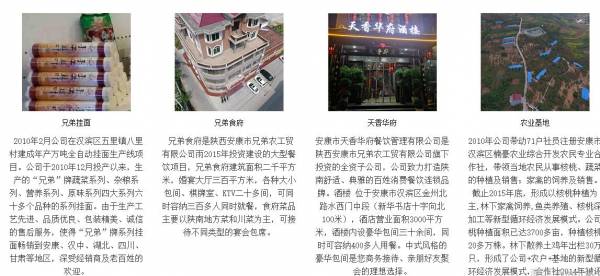陕西安康市*弟农工贸有限公司选用我司企业食品行业的网站优化产品,其SEO关键词有 安康八里砖厂,安康砖厂,安康餐饮公司,安康兄弟食府,安康农业基地,安康鱼类养殖,安康挂面,安康面粉,安康核桃基地,安康重点项目。其特点是用很合适的展示方式、展示效果、站点框架,把客户及其用户很关心的问题突出表现;并以简洁明朗的设计风格,清晰展现公司水平实力,确保一秒抓住目标用户眼球,给用户留下良好的第一印象。陕西安康市*弟农工贸有限公司成立于2010年,是经安康市市场监督管理局审核的有资质的公司,其统一社会信用代码:9161090**521723887 。公司地址:陕西省安康市高新技术产业开发区八里村二组。