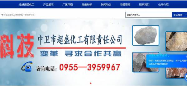 宁夏中卫市超*化工有限责任公司选用我司企业日用化工行业的网站优化产品,其SEO关键词有 中卫市超盛化工,宁夏钙土哪家好,宁夏国标土厂家直销,宁夏钠土供应商,宁夏石灰石哪家好,宁夏重晶石价格,中卫市超*化工有限责任公司。其特点是用很合适的展示方式、展示效果、站点框架,把客户及其用户很关心的问题突出表现;并以简洁明朗的设计风格,清晰展现公司水平实力,确保一秒抓住目标用户眼球,给用户留下良好的第一印象。宁夏中卫市超*化工有限责任公司成立于2007年,是经中卫市市场监督管理局审核的有资质的公司,其统一社会信用代码:9164050077**348358。公司地址:宁夏中卫沙坡头区宁钢北山工业园区。