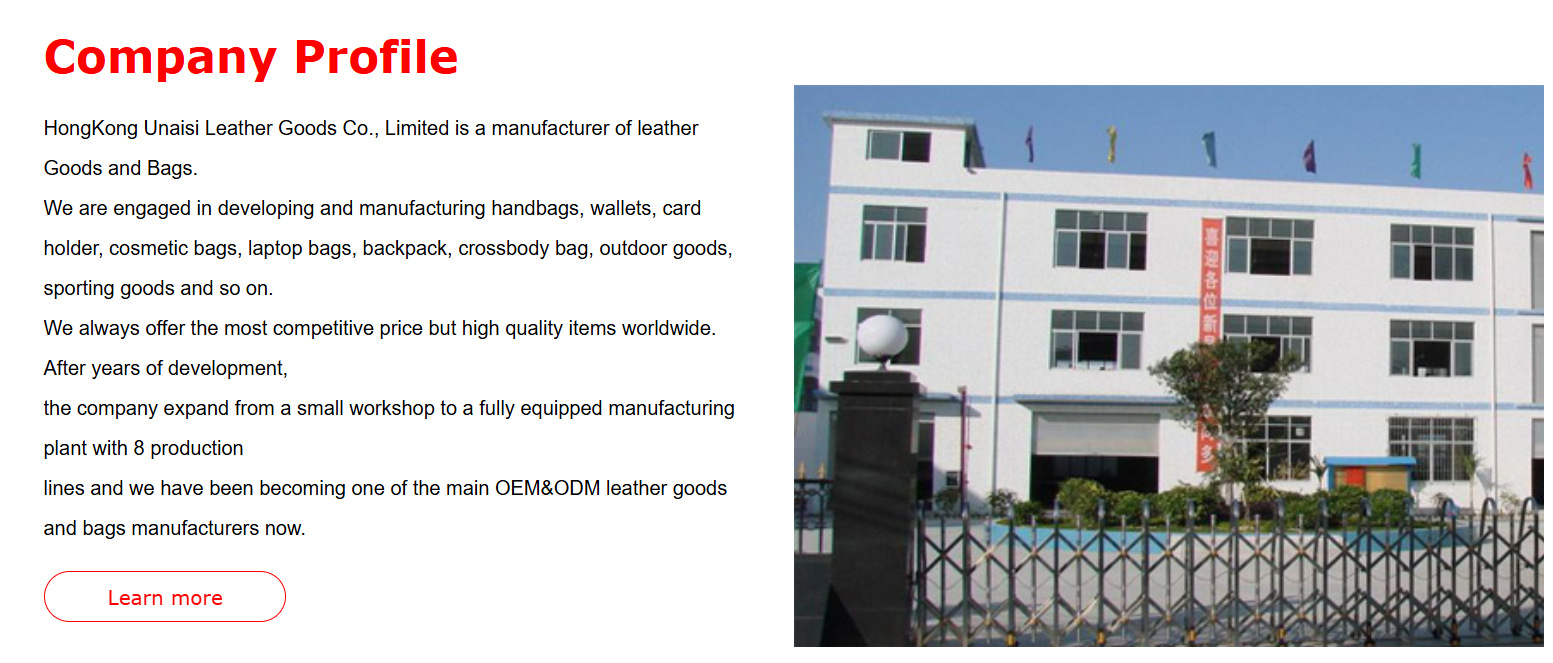 HongKong Unaisi Leather Goods Co., Limited is a manufacturer of leather Goods and Bags.