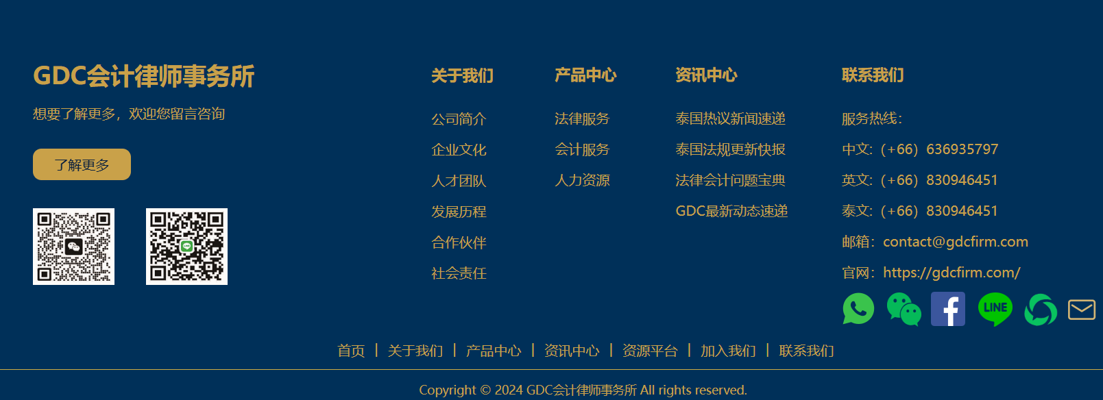 · 财税与法务并行,专业辅助企业跨境布局:我们将财税与法律服务无缝衔接,帮助企业实现跨境业务布局。无论是公司注册、税务筹划、合同审查,还是劳工法务、知识产权保护等,我们都能提供全方位的支持,为您的国际化发展保驾护航。· 助力企业在泰国市场稳步成长:我们的目标是帮助企业在泰国市场实现稳步成长。通过全面的市场调研、政策分析和风险评估,我们为客户提供切实可行的战略建议,助力企业快速适应并开拓泰国市场。