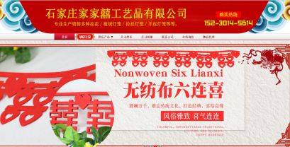 我司在与石家庄家家囍工艺品有限公司合作中;对该公司所经营的婚庆用品这个行业的网站建设项目积累着丰富经验;同时在该行业的网站建设、网络营销等多元化的婚庆用品中也有很多成功的案例;但愿通过我们的合作,能够帮助到合作伙伴们在网络营销路上平安!顺利!发展!