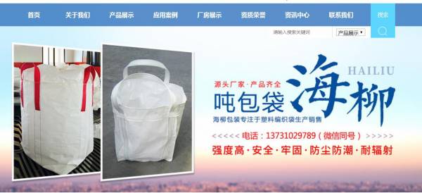 馆陶县海*包装有限公司选用我司企业橡塑制品行业的网站优化产品,其SEO关键词有 集装袋,吨袋,吨装袋,导电集装袋,耐高温吨袋,内拉筋吨袋,防紫外线吨袋,食品级吨袋,药品级吨袋。其特点是用很合适的展示方式、展示效果、站点框架,把客户及其用户很关心的问题突出表现;并以简洁明朗的设计风格,清晰展现公司水平实力,确保一秒抓住目标用户眼球,给用户留下良好的第一印象。馆陶县海*包装有限公司成立于2019年,是经馆陶市市场监督管理局审核的有资质的公司,其统一社会信用代码:91130433MA0**H4F39。公司地址:河北省邯郸市馆陶工业区。