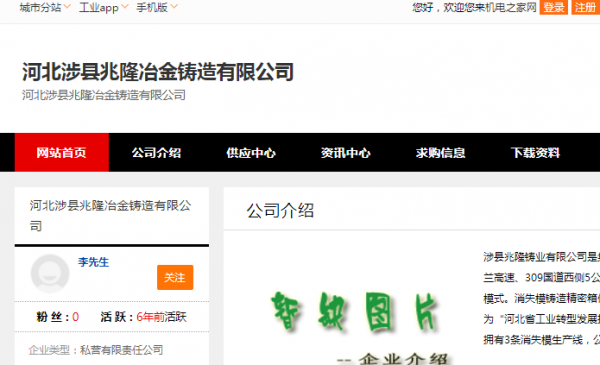 涉县兆*铸业有限公司选用我司企业宠物用品网站案例,其网站建设的特点是铸件及附属产品的制造、销售;生铁、铁精粉、炉料的加工。用很合适的展示方式、展示效果、站点框架,把客户及其用户很关心的问题突出表现;并以简洁明朗的设计风格,清晰展现公司水平实力,确保一秒抓住目标用户眼球,给用户留下良好的第一印象。涉县兆*铸业有限公司成立于2005年,是经涉县市场监督管理局审核的有资质的公司,其统一社会信用代码:911304267808**718L。公司地址:涉县龙虎乡北乱石岩村北。