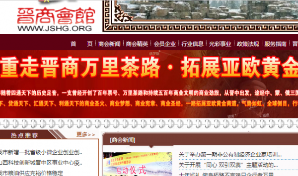 晋*会馆网站是由晋中市工商业联合会、晋中市总商会主办,山西晋商会馆有限责任公司承办,并制作维护。晋中市工商业联合会成立于2002年7月,简称晋中市工商联,是中共晋中市委领导的晋中工商界组成的人民团体和商会组织,是党委和政府联系非公有制经济人士的桥梁纽带,是政府管理非公有制经济的助手。本会工作的指导思想是:高举中国特色社会主义伟大旗帜,以邓小平理论和“三个代表”重要思想为指导,深入贯彻落实科学发展观,紧紧围绕市委、政府“加快科学发展,构建和谐晋中”的战略目标,按照充分尊重、广泛联系、加强团结、热情帮助、积极引导的工作方针,创新工作机制,实现工商联宏观职能与具体操作的有机结合,切实提高工商联履行职能和发挥作用的能力,引导非公有制经济人士健康成长,促进非公有制经济健康发展,为晋中经济充满活力,城市富有魅力,文化更加繁荣、社会更加和谐做贡献。