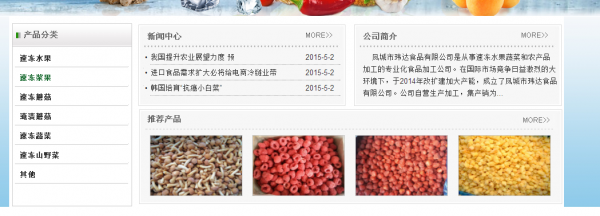凤城市玮*食品有限公司选用我司企业食品行业的网站优化产品,其SEO关键词有 凤城市玮*食品有限公司,凤城市玮达食品,速冻浆果,速冻蘑菇, 速冻水果,速冻蔬菜,速冻果蔬,蘑菇类。其特点是用很合适的展示方式、展示效果、站点框架,把客户及其用户很关心的问题突出表现;并以简洁明朗的设计风格,清晰展现公司水平实力,确保一秒抓住目标用户眼球,给用户留下良好的第一印象。凤城市玮*食品有限公司成立于2014年,是经凤城市市场监督管理局审核的有资质的公司,其统一社会信用代码:912106820**093929D。公司地址:中国•辽宁省凤城市红旗镇永兴村十九组。