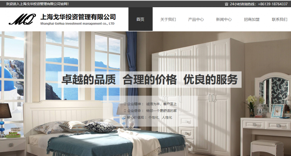 上海戈华投资管理有限公司自2010年成立以来,专注全屋定制,致力于提供专业化的全屋定制家居解决方案与服务。是一家专业从事整体橱柜、板式家具开发的实体企业,拥有美式、欧式、现代简约和新中式四大产品风格; 实木、覆膜、吸塑三大材质体系;开创性的全屋家居定制系统:定制衣柜/定制橱柜/全屋实木定制。