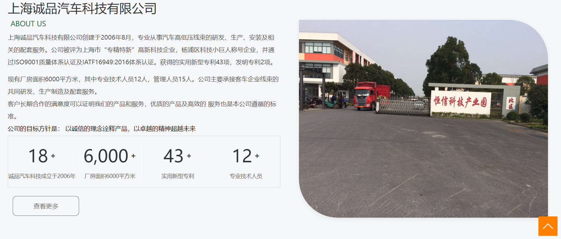 上海诚品汽车科技有限公司创建于2006年8月,专业从事汽车高低压线束的研发、生产、安装及相关的配套服务。公司被评为上海市“专精特新”高新科技企业,杨浦区科技小巨人称号企业,并通过ISO9001质量体系认证及IATF16949:2016体系认证。获得的实用新型专利43项,发明专利2项。