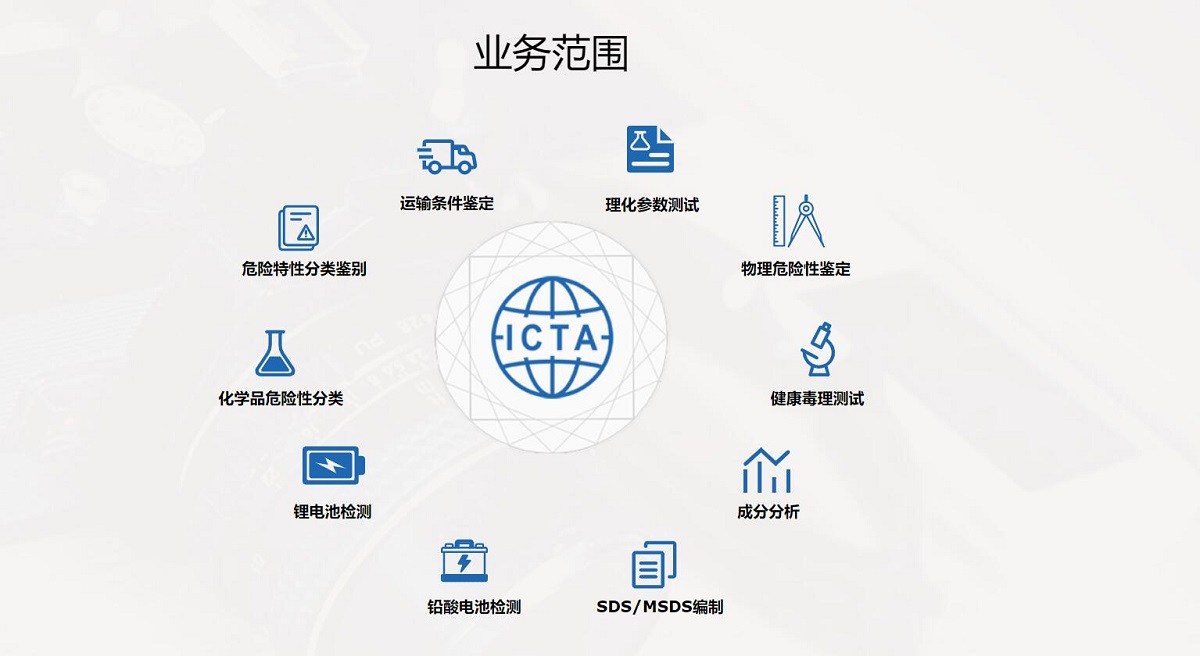 上海艾西特安技术服务有限公司(ICTA)是一家专业的检测服务机构,在化工品检测领域积累了丰富的技术经验,我们致力于为客户提供化工品安全及进出口运输过程中必要的检测服务,着重为企业打造快速高效的服务体验网站建设。