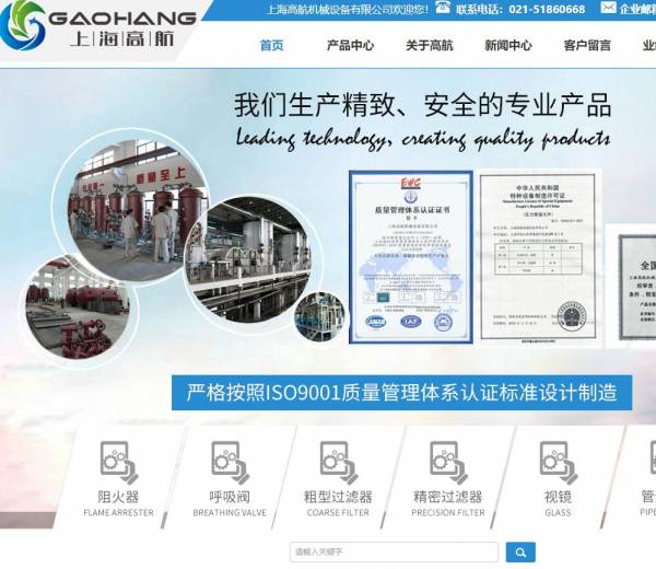 海洋网络从2019年开始与上海高航机械设备有限公司签约网站建设,帮助上海高航机械设备有限公司, 网站设计及开发网站多次网站平台,此项目为上海高航机械设备有限公司新版官方网站。