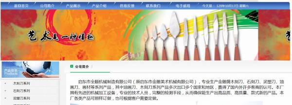 启东市全*机械制造有限公司(原启东市金雕美术机械有限公司),专业生产金雕牌木刻刀、石刻刀、泥塑刀、油画刀、画材等系列产品,其中油画刀、木刻刀系列产品多次出口多个国家和地区,赢得了国内外许多客商的认可。本厂拥有先进的机械加工设备,专业的技术人员,完整的检测手段,从而确保能生产出高品质、高质量、款式新的产品。本厂各类产品可照样订做,也可根据客户需要定做。