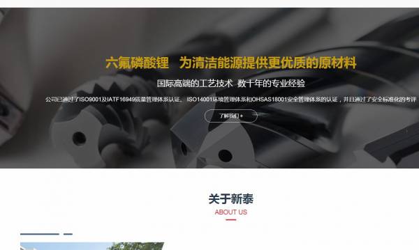 江苏新*材料科技有限公司选用我司企业化工原料行业的网站优化产品,其SEO关键词有 江苏新*材料科技有限公司,新泰材料,六氟磷酸锂,氯化钙,氟铝酸钠,盐酸,氯化钙,氟硼酸钾,氟锆酸钾。其特点是用很合适的展示方式、展示效果、站点框架,把客户及其用户很关心的问题突出表现;并以简洁明朗的设计风格,清晰展现公司水平实力,确保一秒抓住目标用户眼球,给用户留下良好的第一印象。江苏新*材料科技有限公司成立于2011年,是经苏州市市场监督管理局审核的有资质的公司,其统一社会信用代码:9132050058**94366M。公司地址:江苏省常熟市新材料产业园海丰路88号。