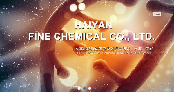 海盐县*细化工有限公司前身海盐县精细化工厂,始建于一九七五年,长期从事天然动植物油脂化工衍生物产品的研究、开发、生产。公司技术力量雄厚,承担国家星火计划项目"脂肪酸衍生物系列产品开发及产业化",被评为"浙江省高新技术企业",产品畅销全国各地,并出口国外,深受用户信赖。