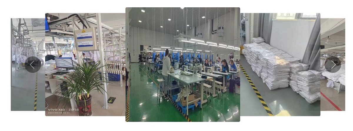 We have fabric production bases in Shaoxing, Zhejiang Province, and garment production bases in Anhui Province and Henan Province, with several advanced garment hanging production lines.