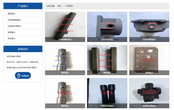 我司主要核心技术有:铝合金硬质氧化,压铸铝硬质氧化,压铸铝发黑氧化,压铸铝发黑硬质氧化,精密件氧化,精密件硬质氧化,导电氧化等。公司拥有先进的生产设备和检测设备。我们的目标:用最专业铝表面处理技术为客户制造最优质的铝制品!