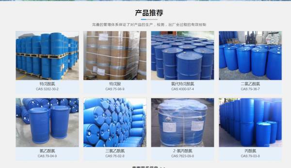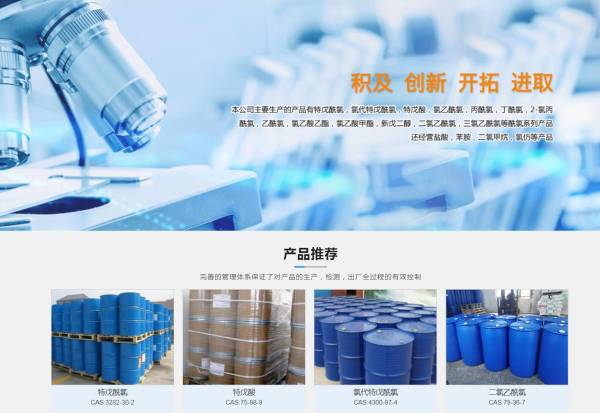 东营*丰化工有限公司选用我司企业日用化工行业的网站优化产品,其SEO关键词有 特戊酰氯,氯代特戊酰氯,正戊酰氯,特戊酸,氯乙酰氯,丙酰氯,丁酰氯,2-氯丙酰氯,乙酰氯。其特点是用很合适的展示方式、展示效果、站点框架,把客户及其用户很关心的问题突出表现;并以简洁明朗的设计风格,清晰展现公司水平实力,确保一秒抓住目标用户眼球,给用户留下良好的第一印象。东营*丰化工有限公司成立于2008年,是经大丰市市场监督管理局审核的有资质的公司,其统一社会信用代码:913705236781**188C。公司地址:山东东营广饶县李鹊镇。
