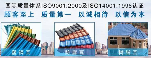 巨野巨*新型材料有限公司,地理位置优越,交通便利。公司拥有完善的加工工艺,先进的管理模式,是一家集设计、开发、生产、销售为一体企业。多年来我们一直致力于新产品的开发和技术改造,积累了丰富的经验 专业产品、专业的服务取得海内外新老客户的一致认可!本公司主要研发生产合成树脂瓦、塑钢瓦、防腐瓦、仿古瓦等产品的足迹已遍布全国各地,满足了客户的不同需求.合成树脂瓦具有颜色持久、质轻、自防水、坚韧、保温隔热、隔音、耐腐蚀、抗风防震、抗冰雹、抗污、绿色环保、防火、绝缘、安装方便等优点,而且造型美观立体感强,颜色具有中国元素,使得它被广泛应用于各类建筑屋面装饰,尤其目前国内大力推广的“平改坡”工程;塑钢瓦具有优异的耐候性能和耐腐蚀性能,是冶金、化工、化肥、陶瓷灯腐蚀工作环境较好的建筑材料;仿古瓦有多种规格,被广泛用于室内屋檐装饰、室外门头、马头墙等,常用场所有餐馆、太极馆、茶馆、酒店等。十多年以来,公司始终秉持以“为客户创造价值”为目标,以市场为导向,以满足、服务客户为宗旨。严格的检测手段,精工细作 ,为客户提供满意的产品 以及完善的售后服务!
