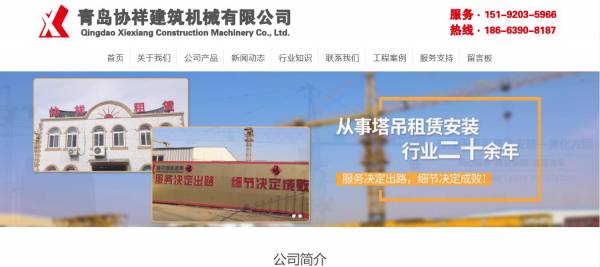 青岛协祥建筑机械有限公司选用我司企业建筑设备行业的网站优化产品,其SEO关键词有 青岛建筑机具租赁,青岛建筑机械租赁,青岛建筑设备租赁,青岛塔机设备租赁,青岛塔机机械租赁,青岛塔机租赁,青岛塔吊塔机租赁,青岛塔吊租赁,山东塔吊租赁,山东塔机租赁。其特点是用很合适的展示方式、展示效果、站点框架,把客户及其用户很关心的问题突出表现;并以简洁明朗的设计风格,清晰展现公司水平实力,确保一秒抓住目标用户眼球,给用户留下良好的第一印象。青岛协祥建筑机械有限公司成立于2009年,是经青岛市市场监督管理局审核的有资质的公司,其统一社会信用代码:91370214686790544N 。公司地址:山东省青岛市城阳区铁骑山路玉皇岭工业园。