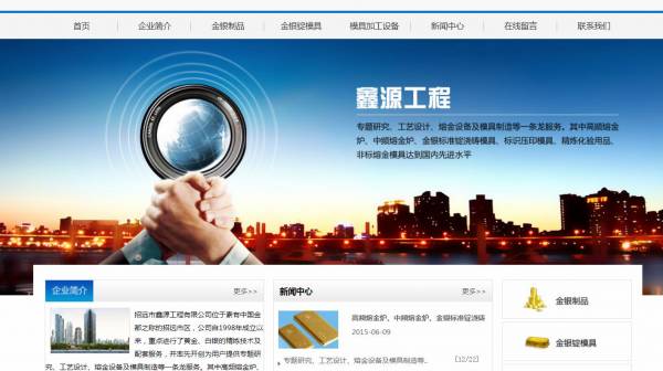 招远市鑫*工程有限公司选用我司企业机械设备行业的网站优化产品,其SEO关键词有 山东招远市鑫*工程有限公司-高频熔金炉、中频熔金炉、金银标准锭浇铸模具、标识压印模具、精炼化验用品、非标熔金模具。其特点是用很合适的展示方式、展示效果、站点框架,把客户及其用户很关心的问题突出表现;并以简洁明朗的设计风格,清晰展现公司水平实力,确保一秒抓住目标用户眼球,给用户留下良好的第一印象。招远市鑫*工程有限公司成立于2004年,是经招远市市场监督管理局审核的有资质的公司,其统一社会信用代码:91370685769**46071 。公司地址:山东省招远市郭家埠红绿灯西。