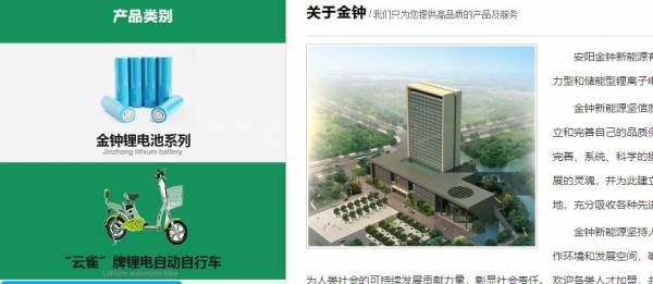 安阳金*新能源有限公司选用我司企业日用化工行业的网站优化产品,其SEO关键词有 锂电池,锂电池供应商,锂电池生产厂家,锂电池批发商,云雀电动车,云雀锂电车,电动车锂电池。其特点是用很合适的展示方式、展示效果、站点框架,把客户及其用户很关心的问题突出表现;并以简洁明朗的设计风格,清晰展现公司水平实力,确保一秒抓住目标用户眼球,给用户留下良好的第一印象。安阳金*新能源有限公司成立于2011年,是经安阳市市场监督管理局审核的有资质的公司,其统一社会信用代码:91410500**6003435R。公司地址:河南安阳市开发区平原路高新区商颂大街南段西侧。