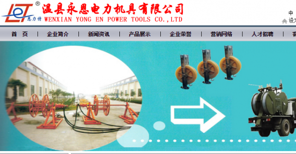 河南省温县永恩电力机具有限公司,位于温县工业集聚区鑫源路中段,南临连霍高速公路,北接焦晋高速公路,交通便利。公司始建于1989年,是专业从事高压架空电力线路施工机具的研制、开发和生产的专业民营企业。现有员工200余人,工程技术人员20人;注册资金1000万元,固定资产8000余万元;占地面积35000平方米。产品行销全国数十个送变电公司,深受顾客青睐和好评。公司现有产品10大类,100多个品种,其中液压自行式牵引机为国内首创,并荣获五项国家专利。主要产品有:四方、六方8、12和18股6-32mm各种规格的特种防扭钢丝绳;1.5t-28t自行、拖拉式牵引机、张力机;Φ90-Φ916mm各种规格的单组合、三组合、五组合、七组合的尼龙轮、铝钢轮放线滑车;网套连接器;放线支架、走板;格构式铝合金抱杆和铝合金高空作业平台等电力施工机具。