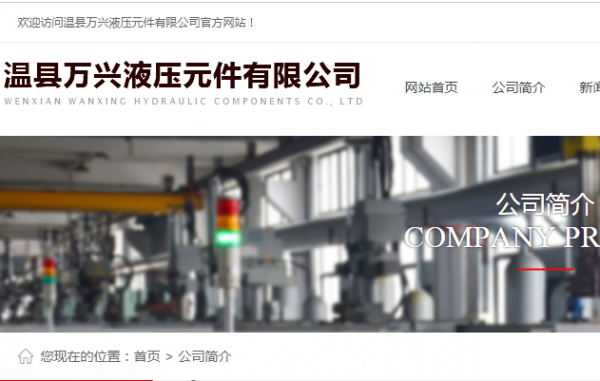 温县万兴*压元件有限公司选用我司企业宠物用品网站案例,其网站建设的特点是制造销售:液压配件。用很合适的展示方式、展示效果、站点框架,把客户及其用户很关心的问题突出表现;并以简洁明朗的设计风格,清晰展现公司水平实力,确保一秒抓住目标用户眼球,给用户留下良好的第一印象。温县万兴*压元件有限公司成立于2002年,是经温县市场监督管理局审核的有资质的公司,其统一社会信用代码:91410825**0706332J。公司地址:温县番田镇东小吴村 。