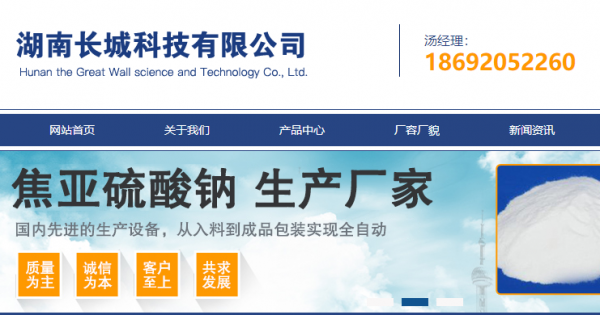 湖南长城科技有限公司选用我司企业宠物用品网站案例,其网站建设的特点是食品添加剂无水亚硫酸钠、食品添加剂焦亚硫酸钠。专注于提升品牌形象设计与高端网站制作服务,对品牌发展战略进行全面提升并以独到的创意、专业的眼光、高水平的执行助您提升企业品牌形象。湖南长城科技有限公司成立于2004年,是经祁东市市场监督管理局审核的有资质的公司,其统一社会信用代码:91430426591027757B。公司地址:湖南省祁东归阳工业集聚区。
