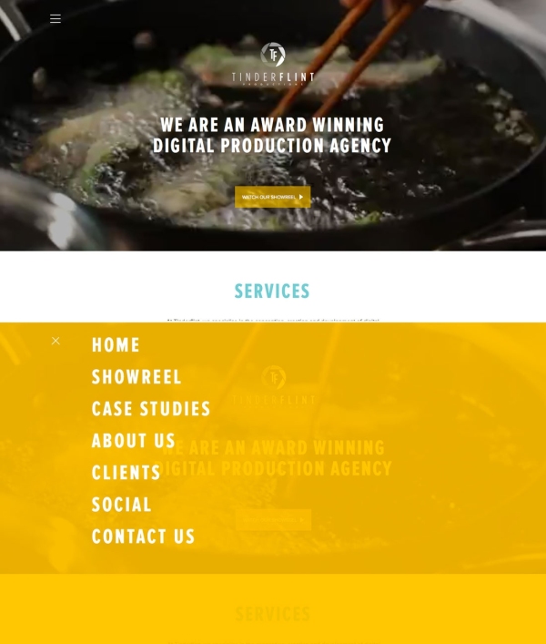 案例一:Pentagram,采用水平滑块和下拉菜单结合方式呈现文字链接导航,适用于业务多样有层级关系的企业网站,能保证页面简洁、展示丰富内容,方便用户定位业务详情页面。