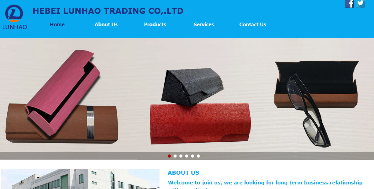 HEBEI LUNHAO TRADING CO,.LTD was established in 2017 as a professional manufacturer and foreign trade specialize in reading glasses,sunglasses optical frames,and optical cases;In addition,we can also supply various other optical items in very competitive prices including cleaning cloth,resin lenses,equipment &accessories.