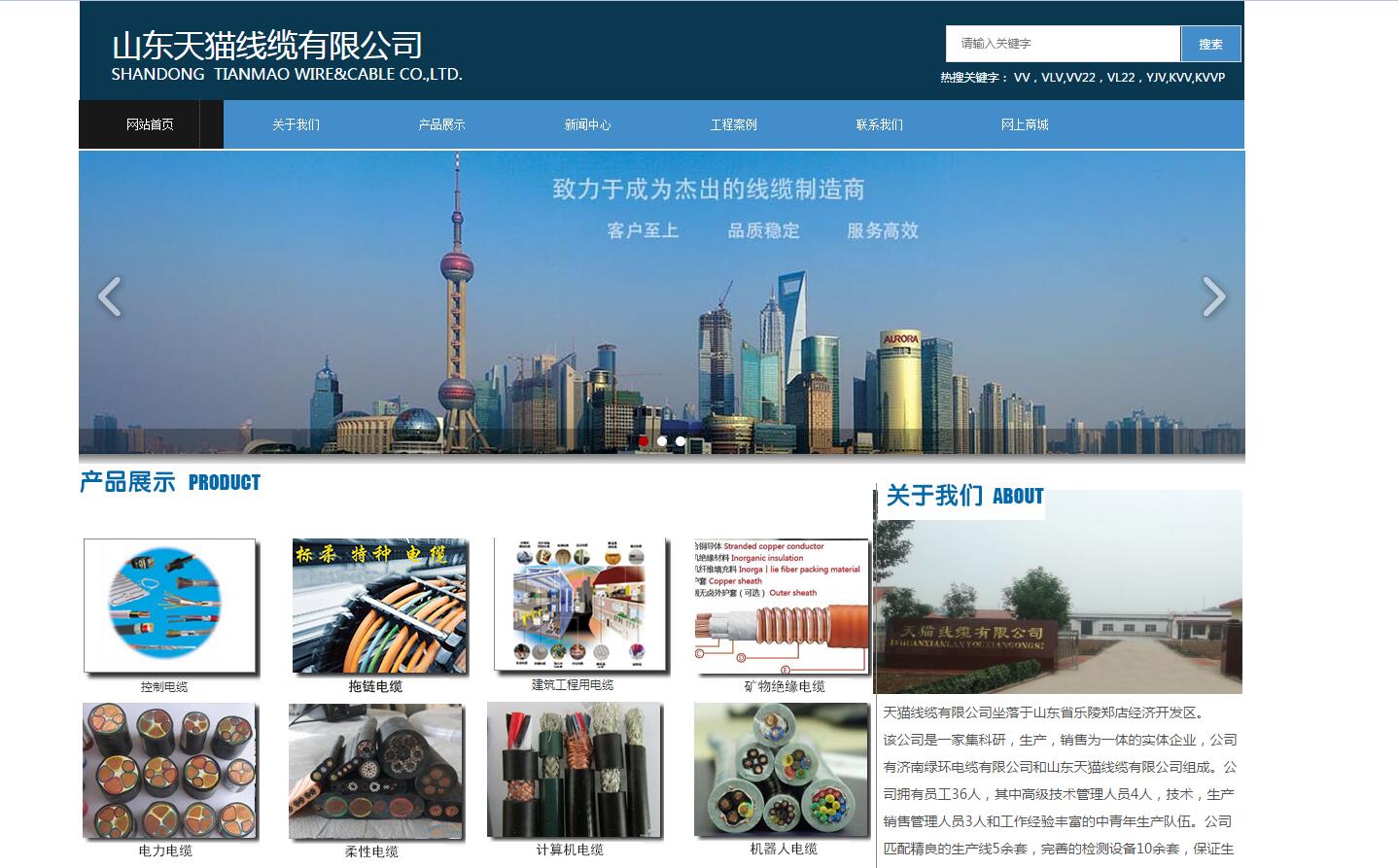 海洋网络网站建设从2018年开始与 天猫线缆有限公司深度合作,帮助天猫线缆有限公司设计网站及开发网站多次网站平台,此项目为2018年天猫线缆有限公司新版官方网站。
