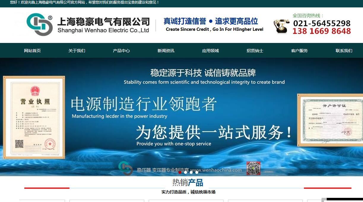 上海稳豪电气有限公司创建于2000年初期,原名【上海稳佳电气有限公司】,是稳压器、变压器等电源产品的大型生产基地,在电源行业享有很高的声誉和知名度。是电源行业的领导品牌。稳豪公司系中国电源学会会员单位,所有产品均有中国人民保险公司承保,其产品通过了质量体系ISO9001-2000质量体系认证,主要产品有交流稳压器、干式变压器、直流稳压器、UPS不间断电源、变频稳压电源等五大系列100多种产品,公司在电气产品的研发、设计等方面投入了巨大的人力、 物力,财力。公司由原来的贸易型公司转变成现在的生产型实体企业